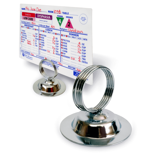 Dietary Tray Card Holder. Holds up to 2 Cards. Chrome and Stainless Construction. 12 per box.