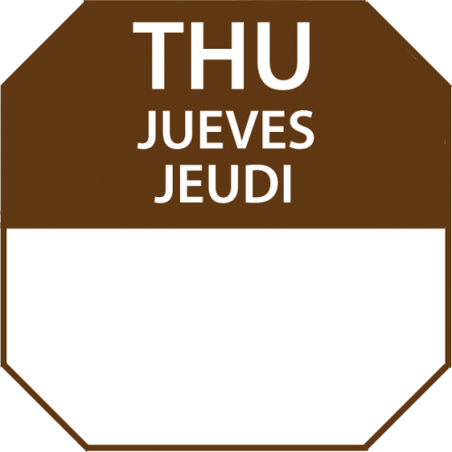 THURSDAY (Brown) English, Spanish and French. Individual Day Labels aid in preparing food for specific days. 750 per roll.