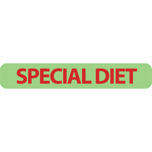 "SPECIAL DIET" LIGHT GREEN/RED Diet Alert Label. Used to notify staff of the Dietary Requirements of residents/patients. 200 Labels per roll.